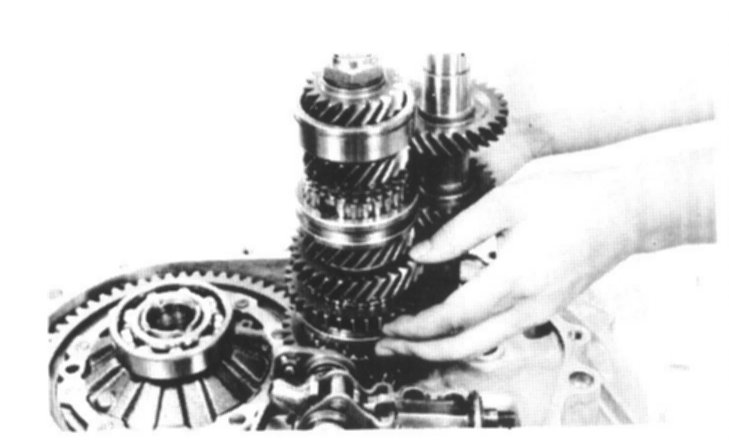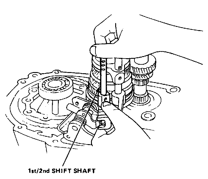 6. Lift the countershaft 1st and 2nd synchro sleeve to shift into 2nd gear.