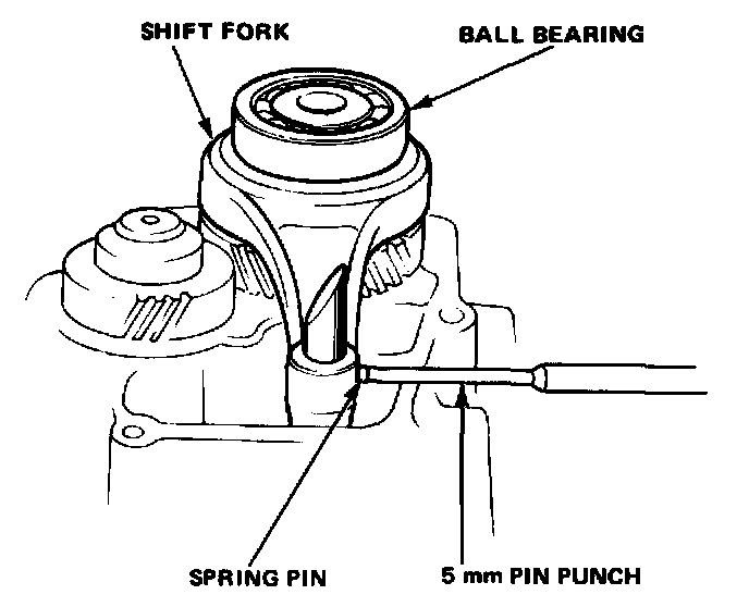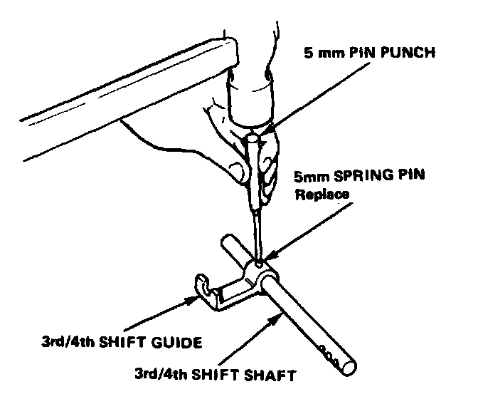 8. Insert the 3rd/4th shift fork shaft into 3rd/4th shift guide, and install the 5 mm spring pin as shown.
