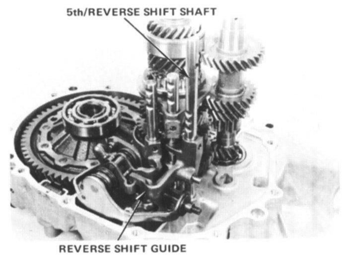 11. Hook the 5th/reverse shift guide to shift arm, then install the shift shaft.