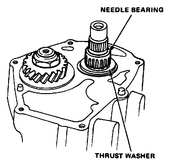 18. Install the transmission housing being careful to line up shafts. Expand countershaft bearing snap ring so that transmission housing can fall into place.