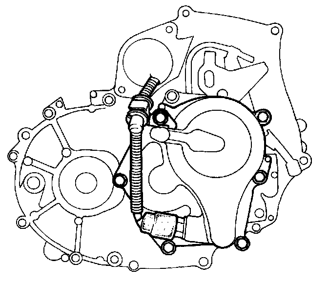 1. Clean all liquid gasket residue from the mating surfaces of transmission and clutch housings.2. Install the shift rod, selector arm, new lock plate and bolt. Bend the lock tab on lock plate over against bolt head.