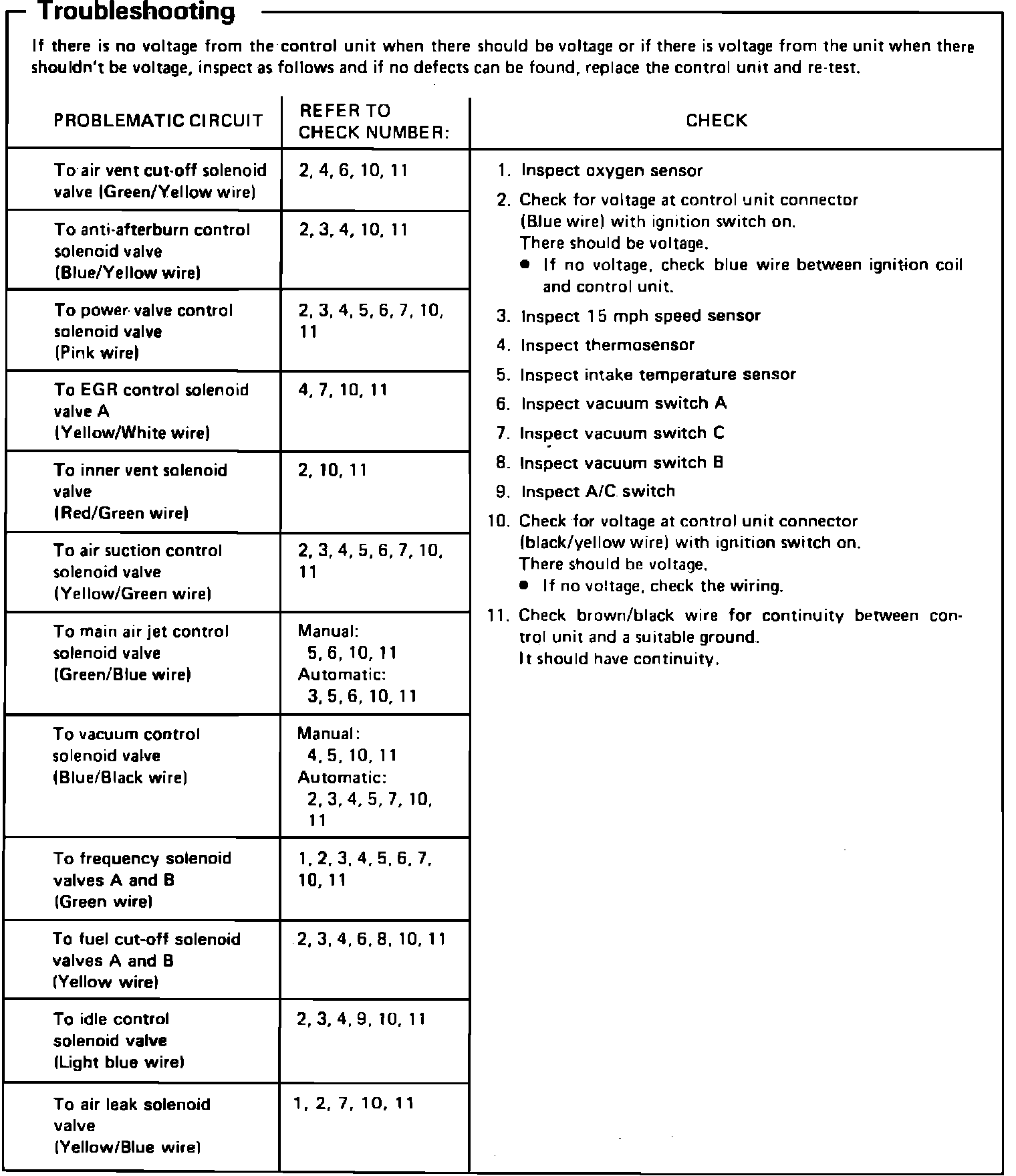 Fig. 46 Control Unit Troubleshooting Chart.: