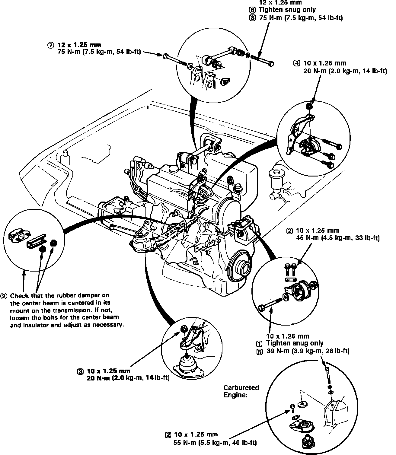 a. Refer to Fig. 7 for engine mount torque specifications.