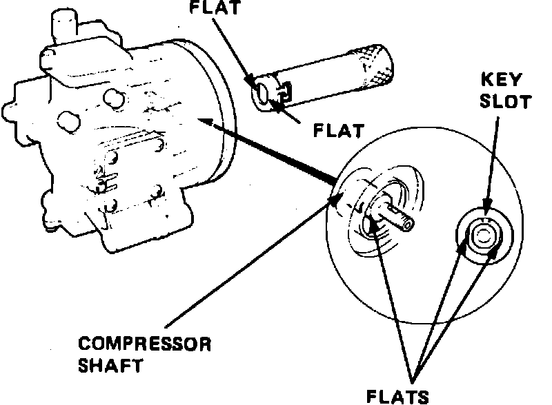 2. Apply a suitable lubricant to compressor shaft, then install shaft seal onto compressor shaft, aligning seal case flats with shaft flats, Fig. 6.