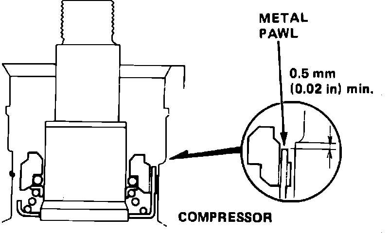 4. Ensure seal case metal pawl is .020 inch below compressor shoulder as shown, Fig. 7, then inspect I.D. of compressor for damage or foreign material.