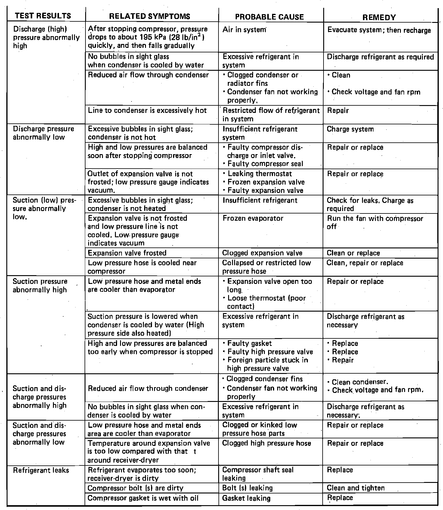 Fig. 6 Compressor Trouble Shooting Chart: