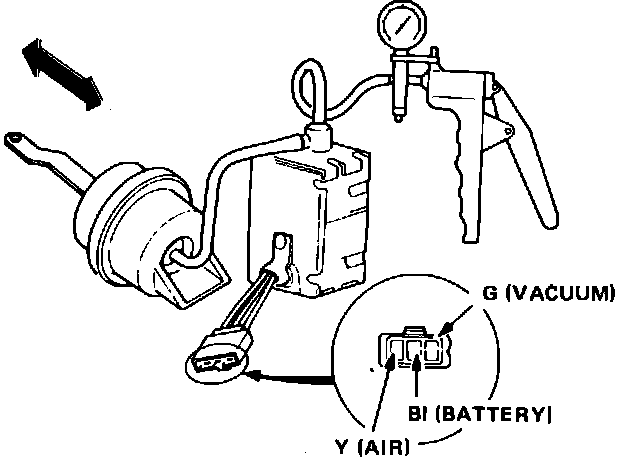 5. Connect jumper from battery negative terminal to solenoid yellow wire terminal. Solenoid should vent trapped vacuum and diaphragm arm should extend.