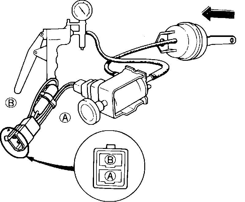 4. Connect battery positive terminal to solenoid terminal A and negative battery terminal to solenoid terminal B. Vacuum should be transmitted to diaphragm, and diaphragm plunger should retract and hold.
