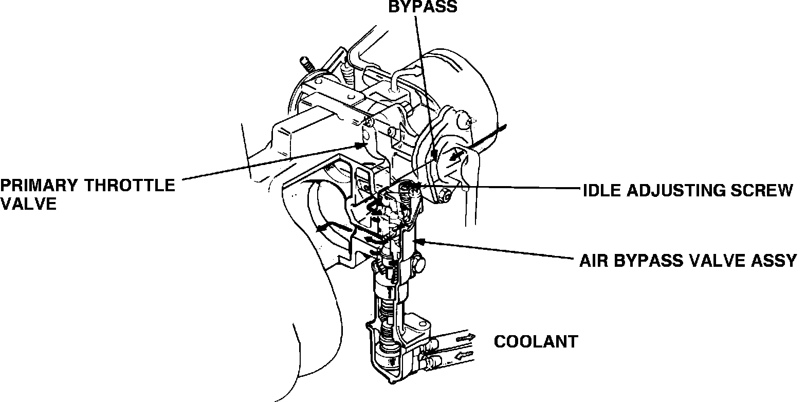 Because fuel cutoff occurs at a predetermined position or angle of the throttle valve and signals from the throttle position sensor are used to determine the amount of fuel injected into the engine, idle speed cannot be maintained by altering the position of the throttle plate. If the throttle valve is moved to adjust idle speed incorrect fuel delivery may result, adversely affecting driveability and exhaust emissions. To compensate for this condition, idle speed is maintained by allowing a calibrated amount of air to bypass the throttle plate.