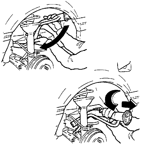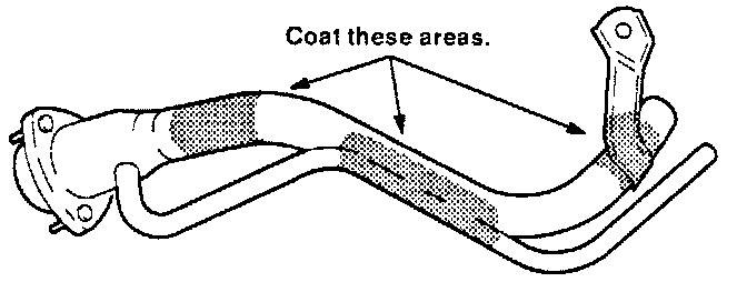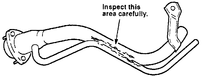 Vehicles Normally Driven Outside Areas of Heavy Salt Use1. Disconnect both hoses from the fuel filler pipe. Remove the mounting bolt and three mounting nuts. Remove the pipe by moving the bottom end forward and pivoting the top end down and out.