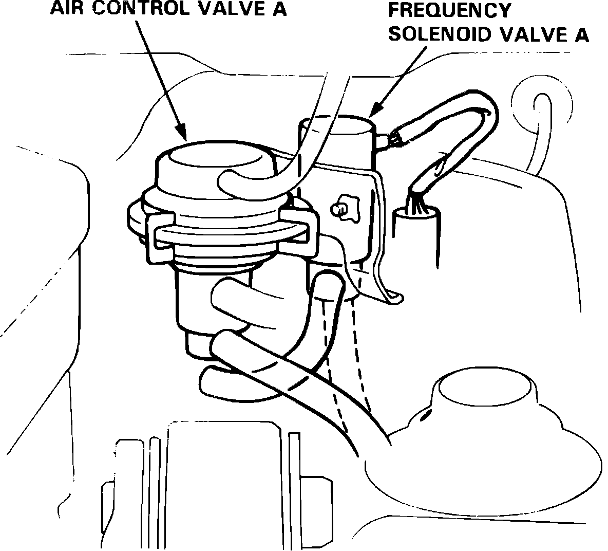 a. On 1985-86 Prelude with automatic transaxle, remove frequency solenoid valve A and air control valve A, then disconnect vacuum lines and connect lower line to air control valve A as shown in Fig. 8.