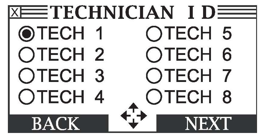 5. Select your TECHNICIAN ID, then press Enter. After the summary of your technician ID appears, press Enter again.