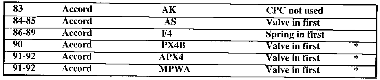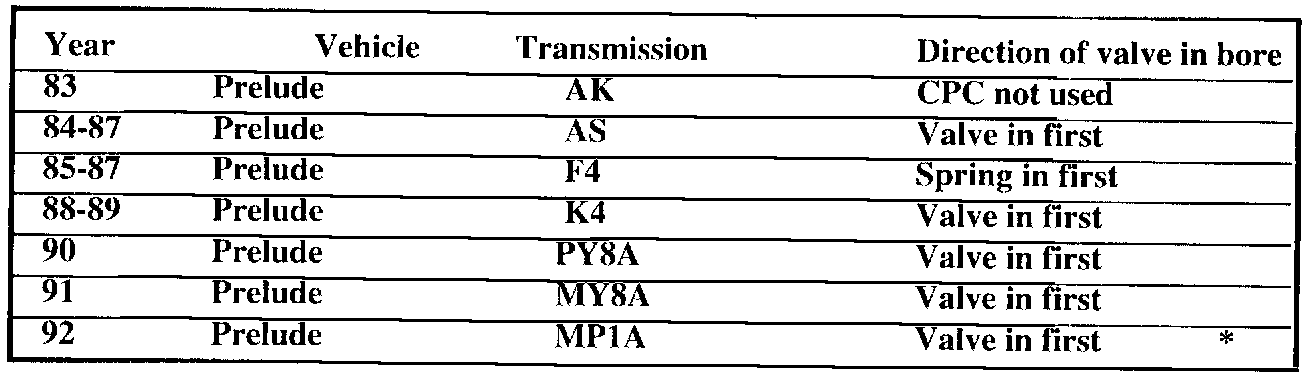 The chart on the indicates which models have CPC valves and which ones can be installed backwards. Consult your service manuals for exact location of the CPC valve for your model of transmission.