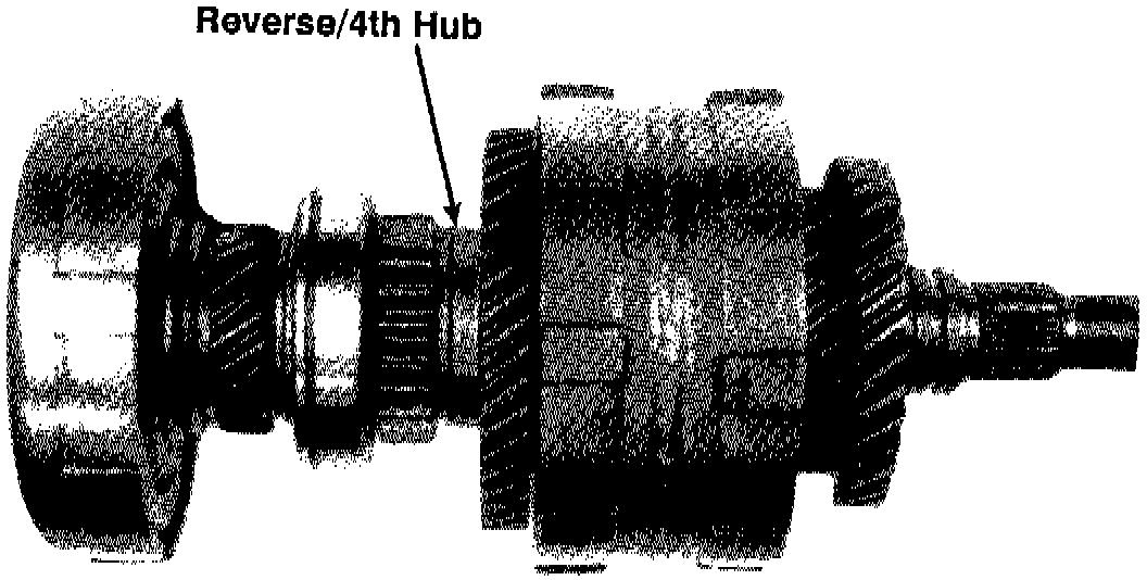 Assemble the mainshaft (including the case bearing) and tighten the nut to 25 lb ft. The Reverse/4th hub should have .003" - .006" endplay. If you don't have any clearance, you have a mis-assembly or a worn Reverse/4th bearing collar.