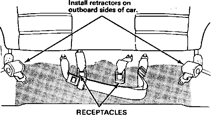 NOTE: The retractors must be mounted on the outboard sides of the car.