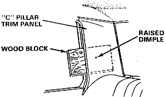 6. Remove the special tool, then place the wood block between the "C" pillar trim panel and the "C" pillar, centered on the raised dimple as shown above.