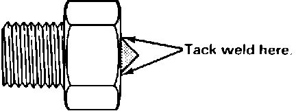 3. Install a nut onto the threaded section of the bolt so it is flush with the base of the point, then tack weld it onto the bolt.