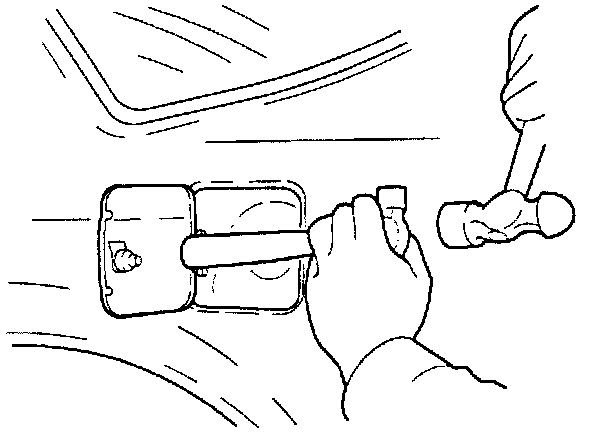 1. Pull back the trunk liner, push out the fuel filler door striker.2. Remove the fuel filler door.