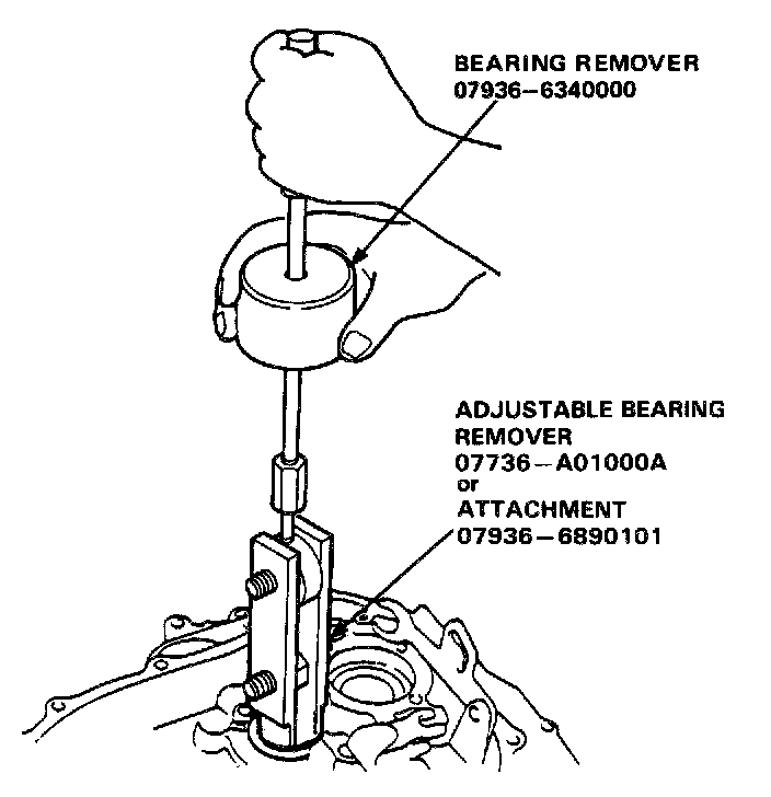 3. Insert Bearing Remover with attachment into countershaft bearing.