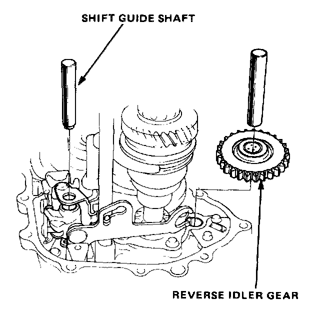 4. Pull out reverse idler shaft and remove gear.