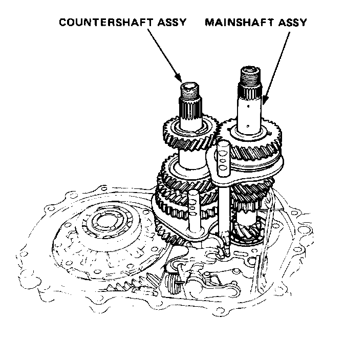 8. Remove countershaft and mainshaft as an assembly, with 1st/2nd & 3rd/4th shift shafts.