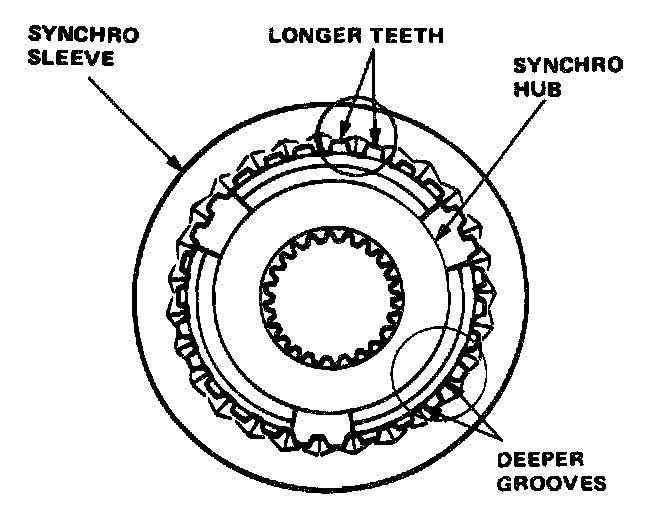 Each synchronizer sleeve has three sets of longer teeth (