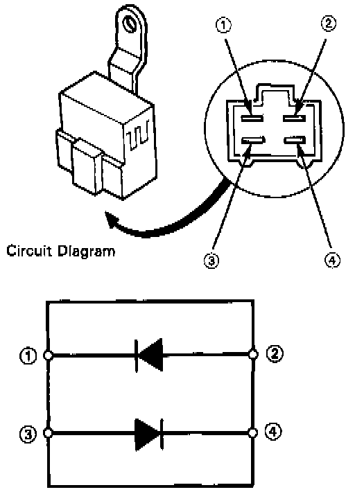 4. Check the other diode (terminals 3 and 4). Connect positive probe to No. 4 terminal and negative to No. 3.