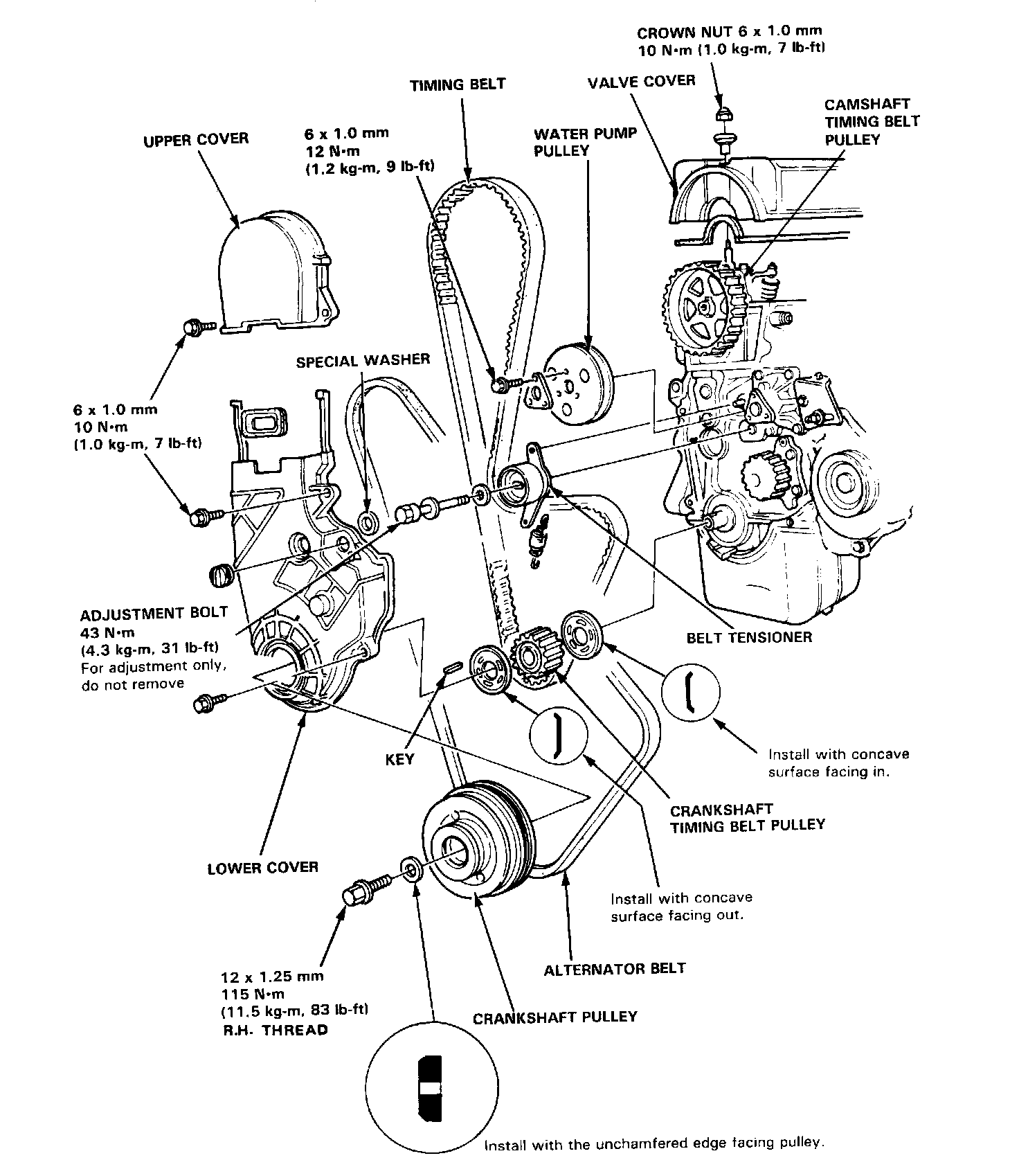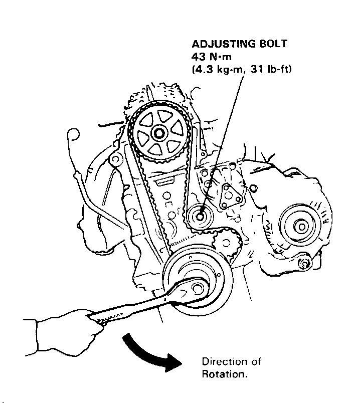 - Always adjust timing belt tension with the engine cold.