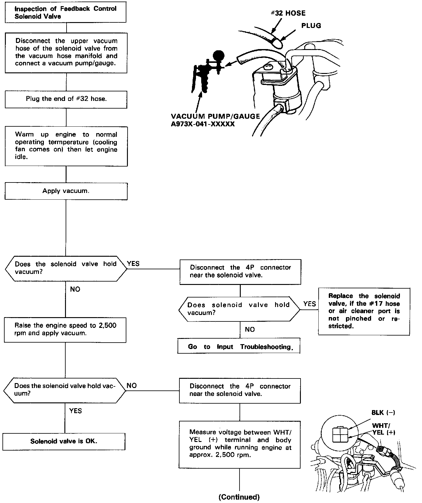The feedback control system is designed to provide a stoichiometric air/fuel ratio, allowing the three-way catalyst's performance to give a simultaneous reduction of hydrocarbons, carbon monoxide and oxides of nitrogen. The feedback control solenoid valve is provided to stop feedback operation at low engine speed such as at engine idling.