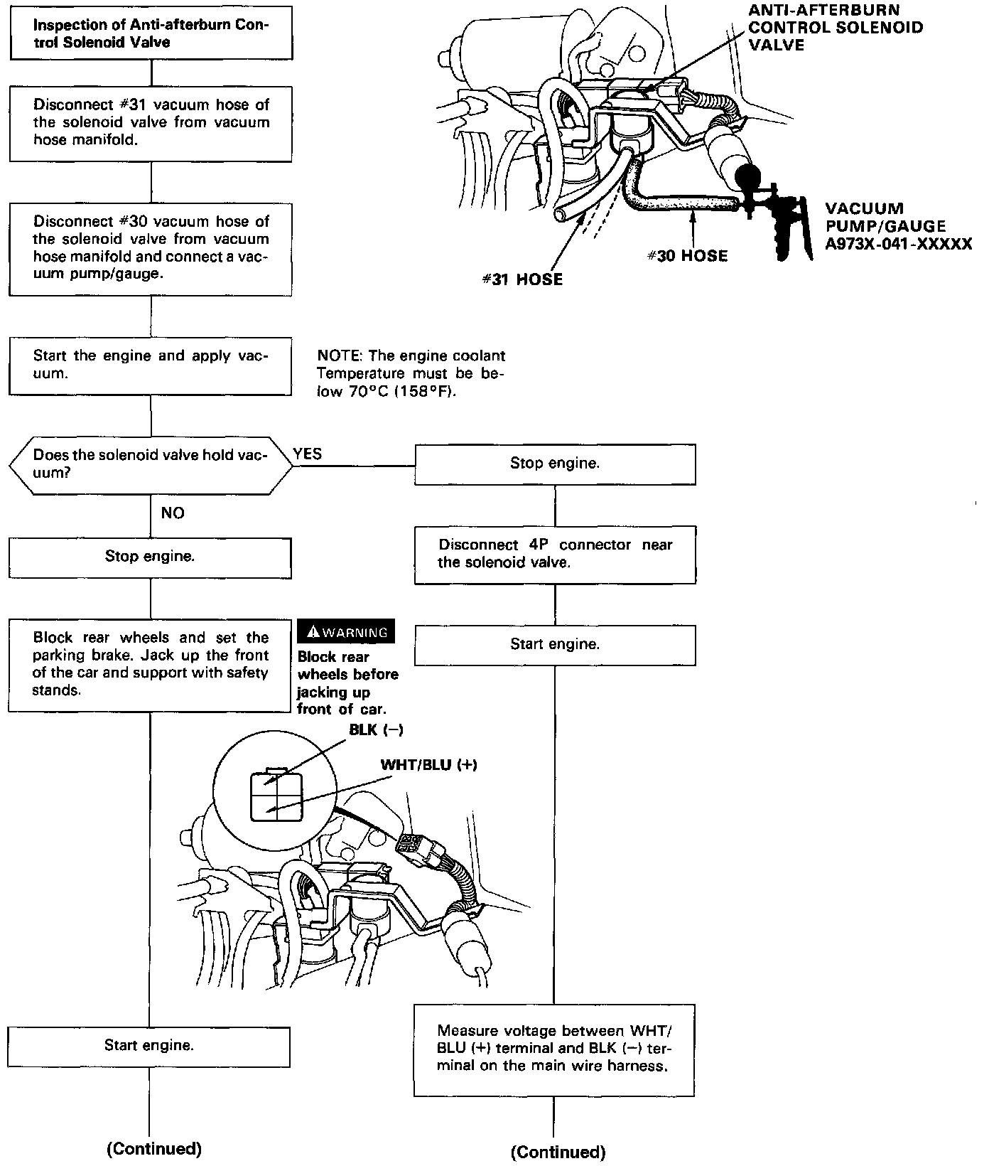 The anti-afterburn control solenoid valve is provided to control the operation of the anti-afterburn valve by introducing vacuum to the diaphragm holding the valve closed. The anti-afterburn valve senses intake manifold vacuum changes during gear shifting or deceleration, and supplies fresh air to the intake manifold in order to prevent the escape of unburned fuel.