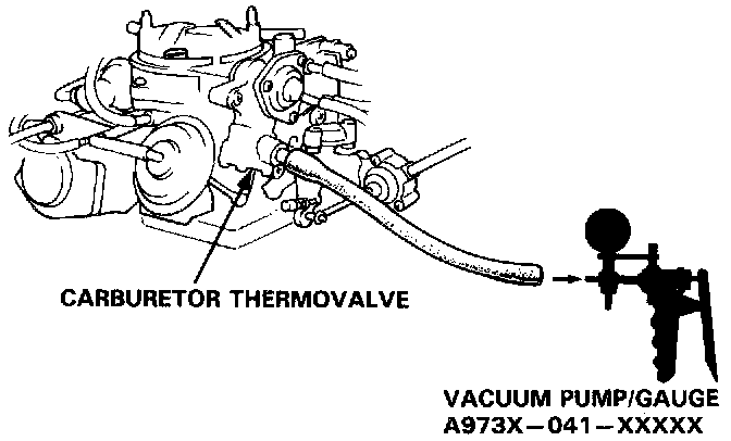 1. Disconnect the hose at the carburetor thermovalve and connect a vacuum pump/gauge to the thermovalve.