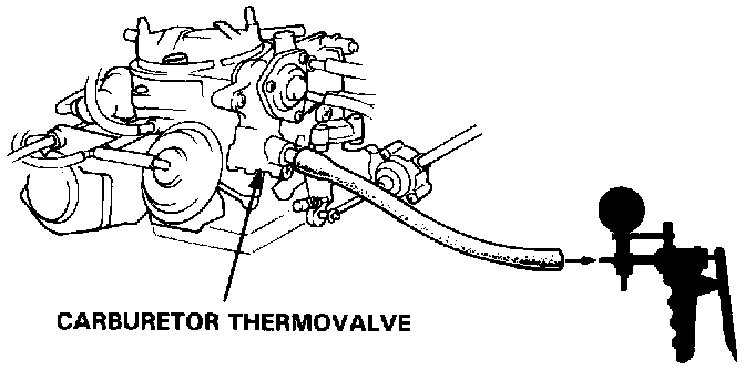 1. Disconnect the hose at the carburetor thermovalve and connect a vacuum pump/gauge to the thermovalve.