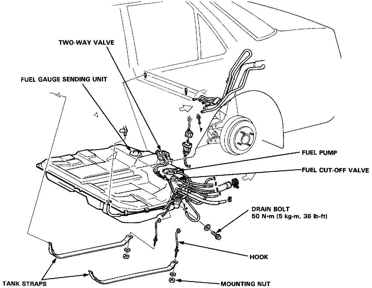 2. Remove the drain bolt and drain the fuel into an approved container.