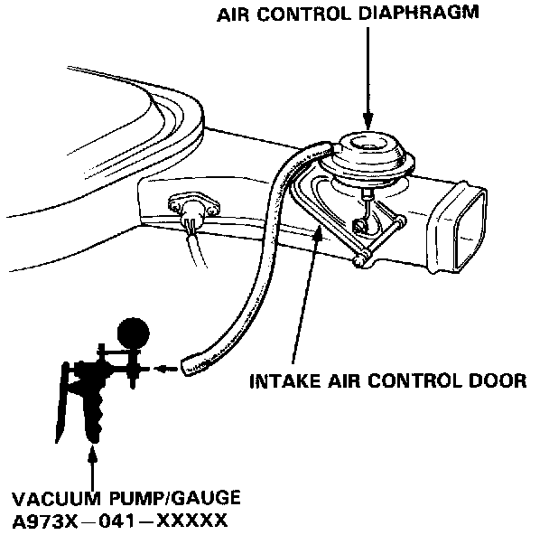 5. Disconnect the vacuum hose from the air control diaphragm, connect a vacuum pump/gauge to the diaphragm inlet pipe and apply vacuum.