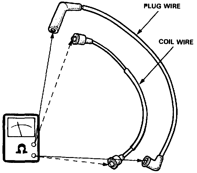 3. If resistance exceeds 25,000 ohms, replace the ignition wire.