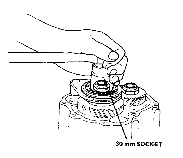 NOTE: Before removing mainshaft/countershaft locknuts measure clearance between spacer collar and shoulder on fifth gear.