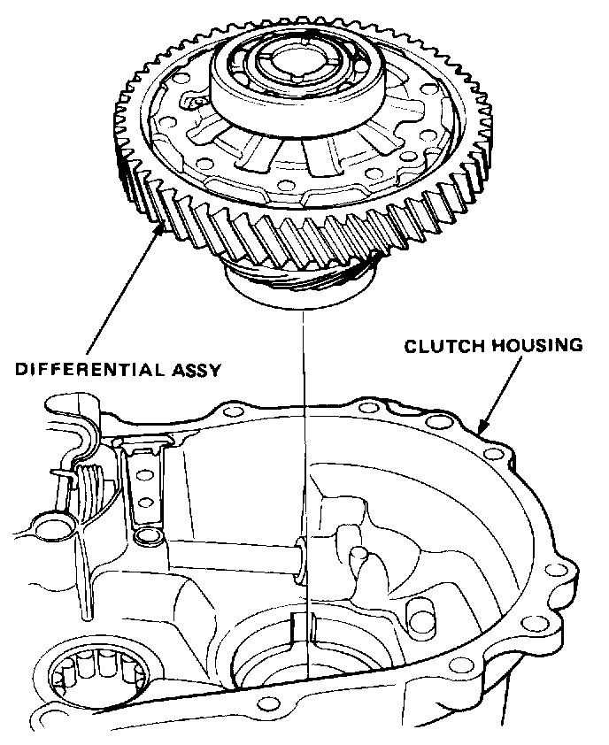 1. Install differential assembly in clutch housing