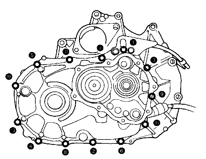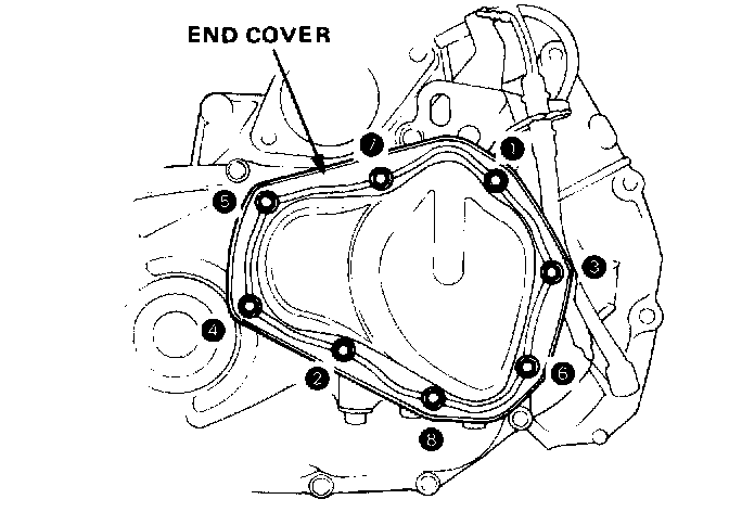 14. Torque 8 x 1.25 mm bolts in sequence shown, to 28 N-m (2.8 kg-m, 21 lb-ft).