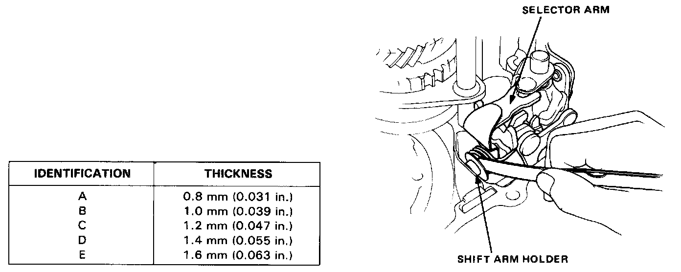 1. Measure clearance between collar and shim on shaft of selector arm as shown.CLEARANCE