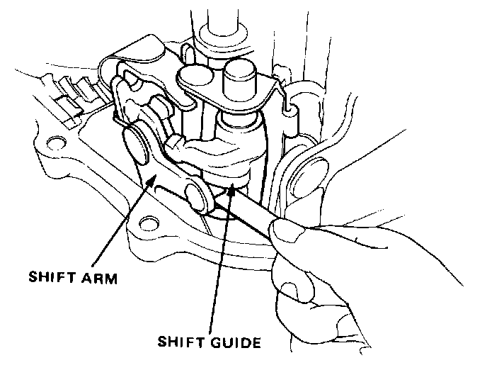 1. Check shift arm-to-shift guide clearance.Standard (New): 0.1-0.3 mm (0.004-0.012 in.)