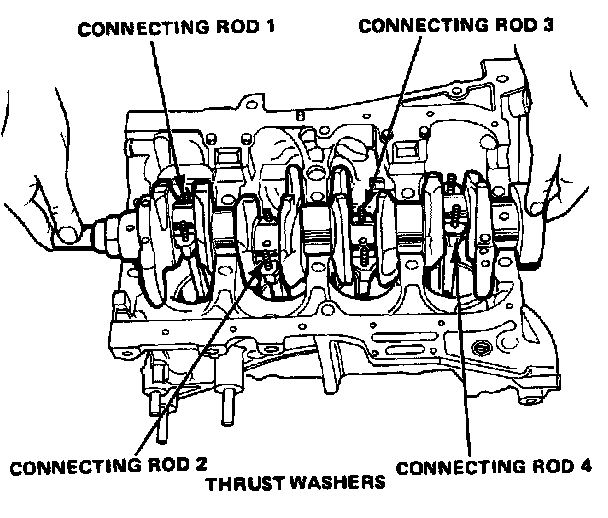 CRANKSHAFT INSTALLATIONNOTE: Before installing the crankshaft, apply a coat of engine oil to the main bearings and rod bearings.