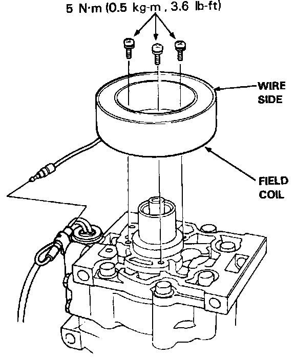 - Install the field coil with the wire side facing up (see above).