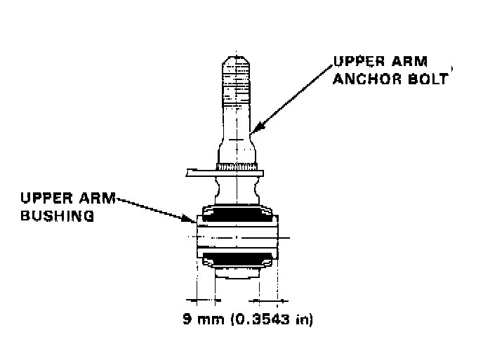 5. Remove upper arm from vehicle and place each upper arm anchor bolt in a vise and drive out the upper arm bushings.