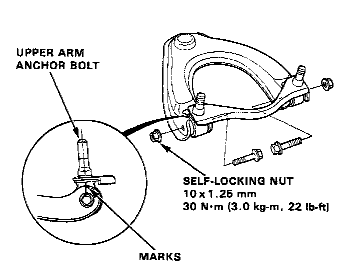 NOTE: Align the upper arm anchor bolt with the mark on the upper arm.