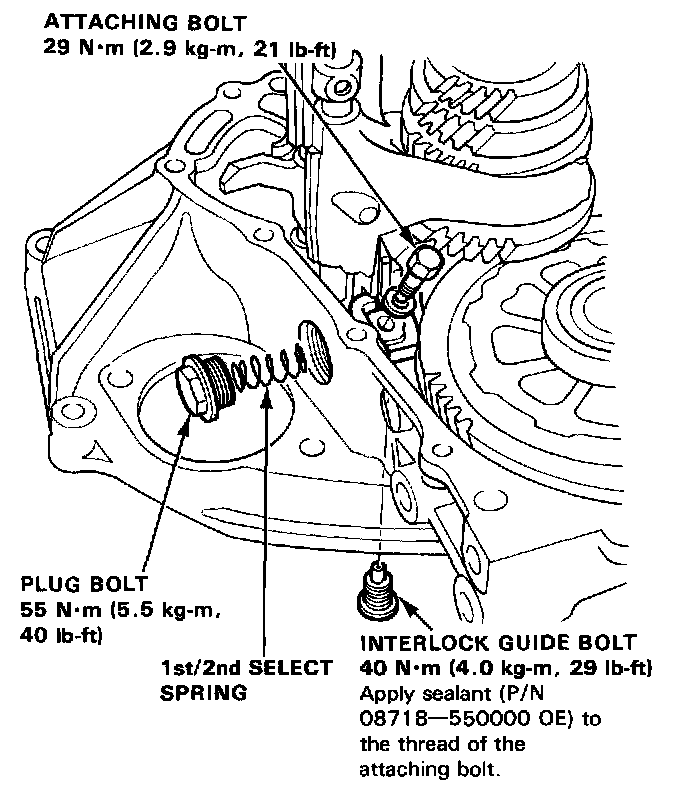 NOTE: Do not install the 1st/2nd select spring and plug bolt yet.