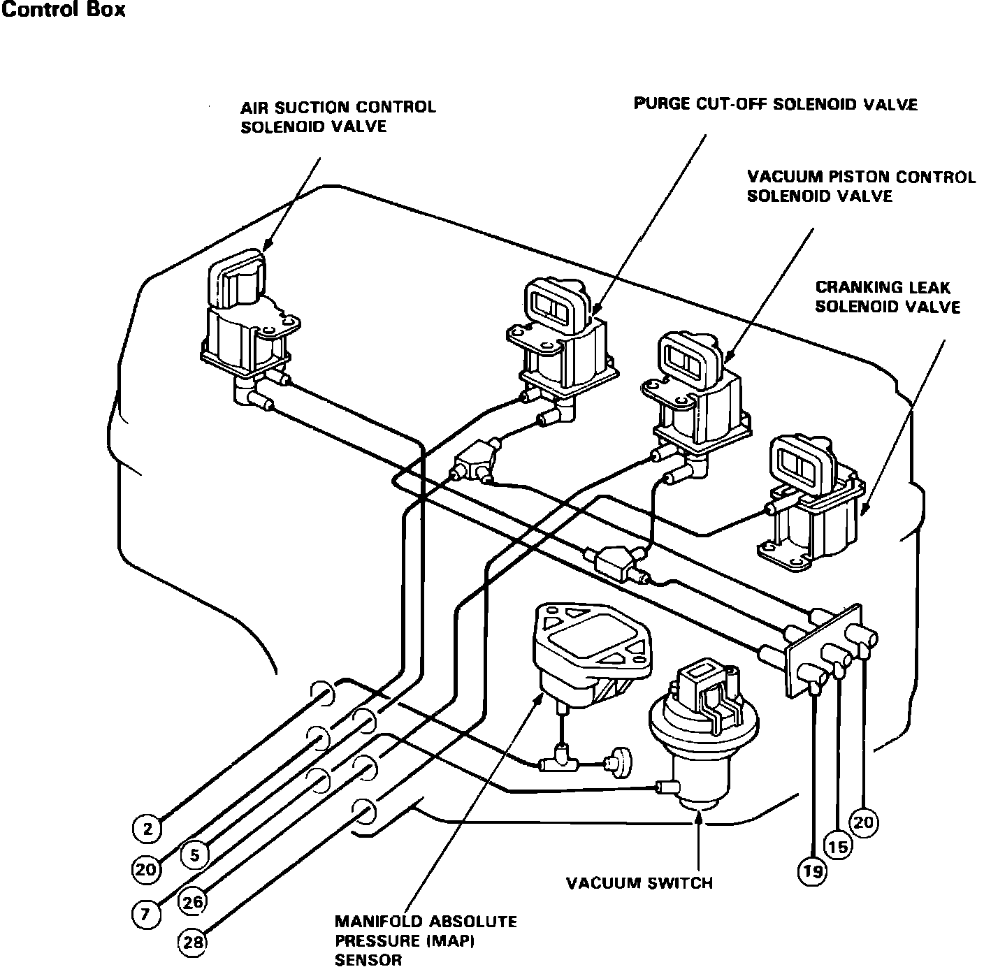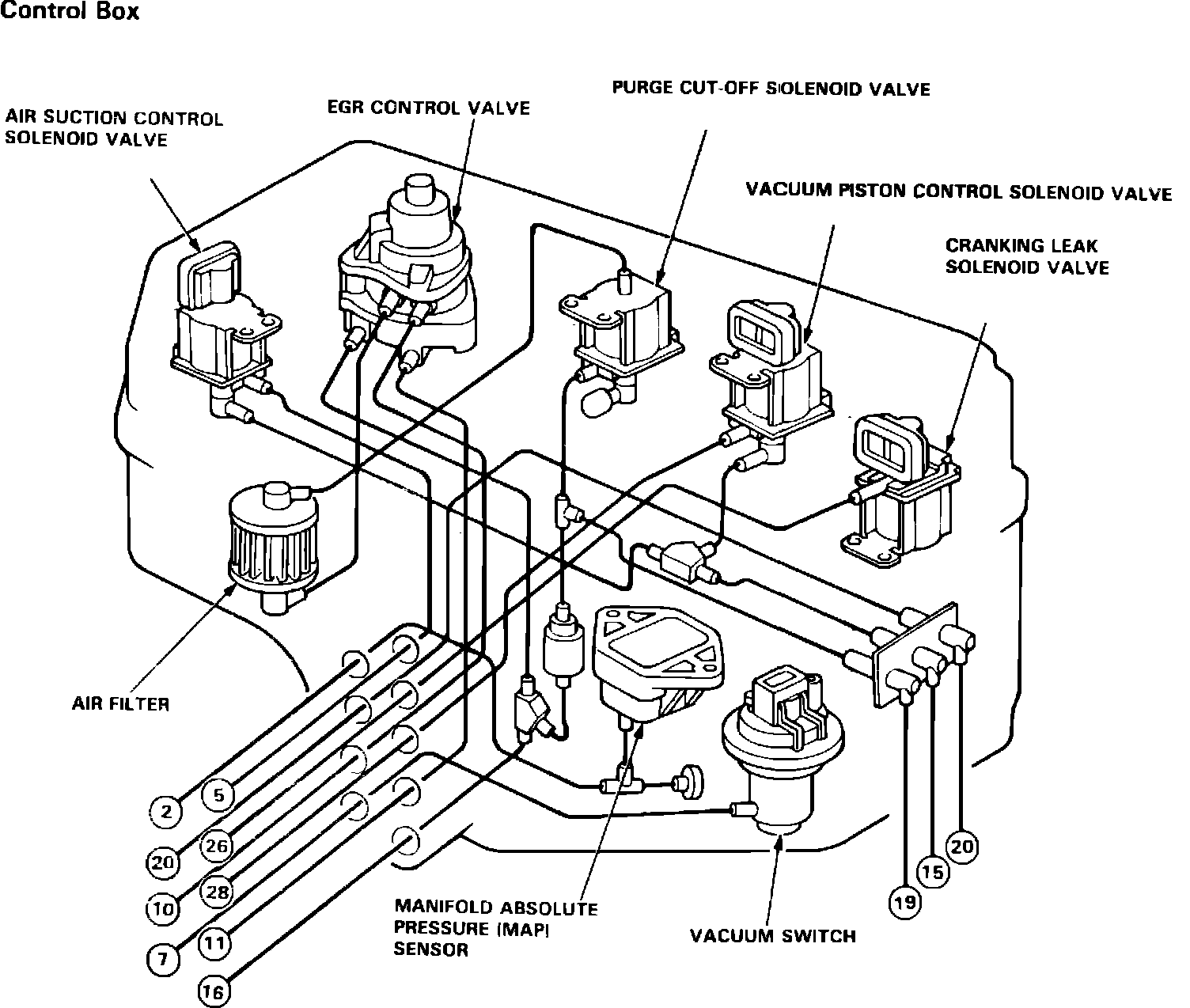 Fig. 71 Control Box Reference Diagram. W/CARB Exc. CA: