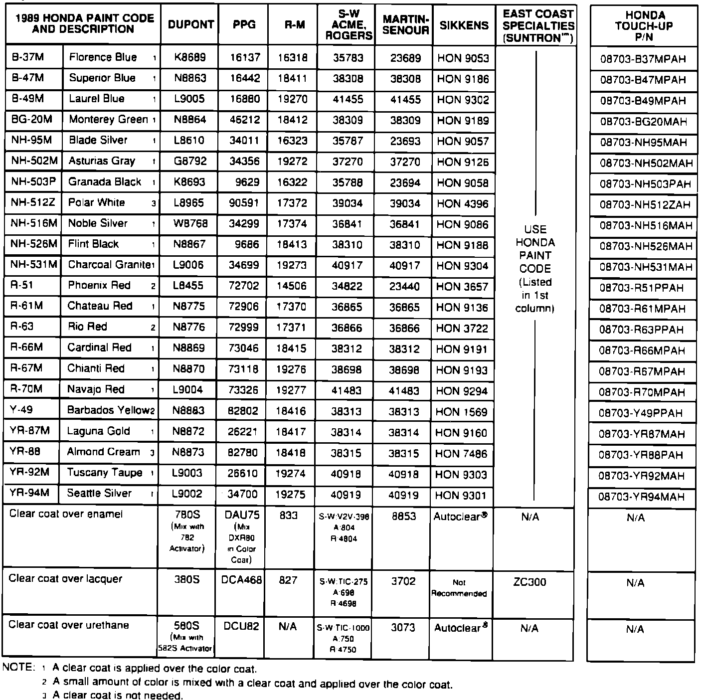 The original paint is acrylic enamel. Honda paint codes which include "M" or "P" are metallic colors.