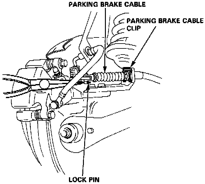 Remove the lock pin and disconnect the parking brake cable from the lever, then remove the clip.