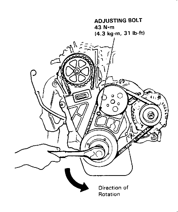 - Always adjust timing belt tension with the engine cold.