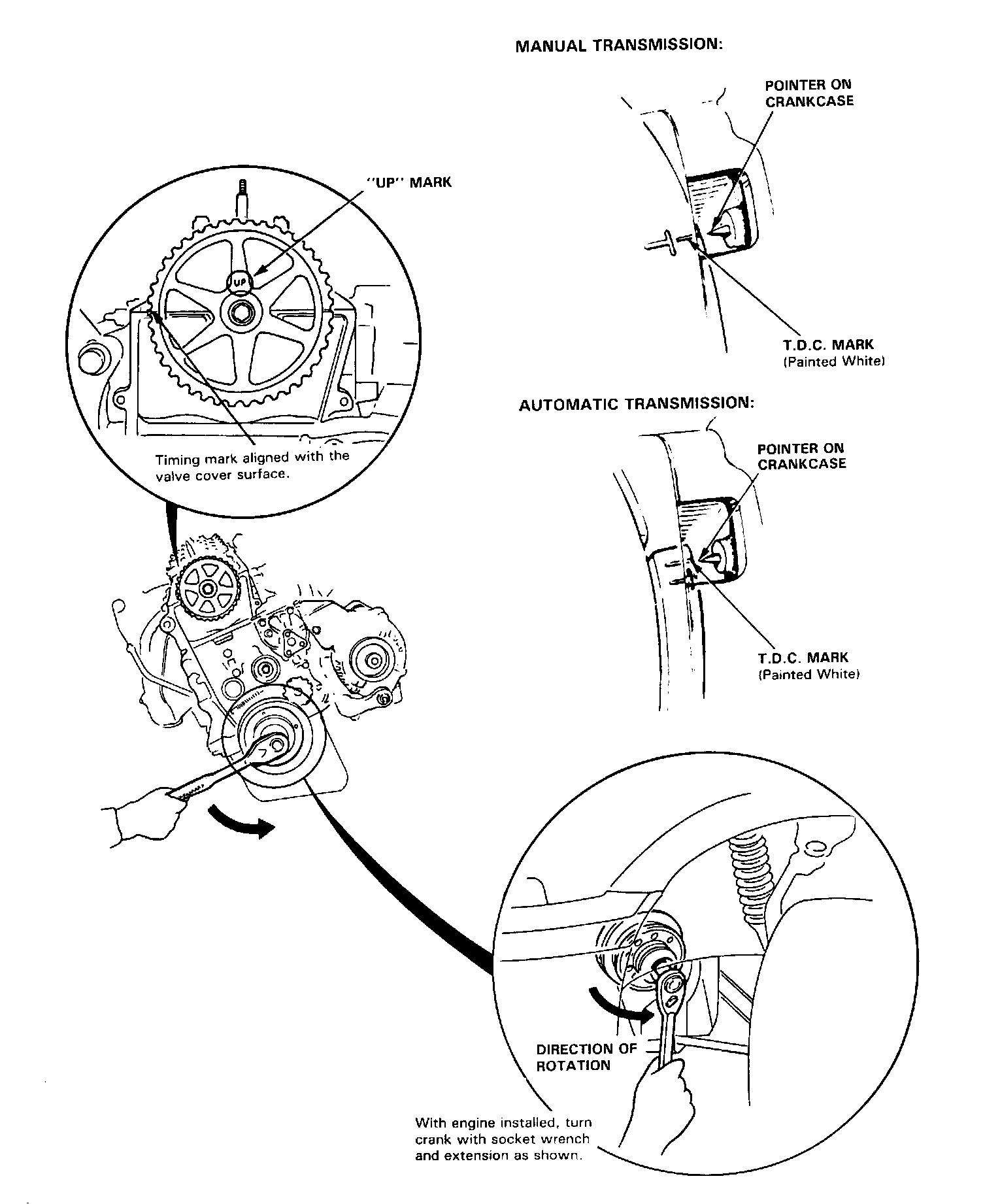 1. Positioning crankshaft before installing timing belt.